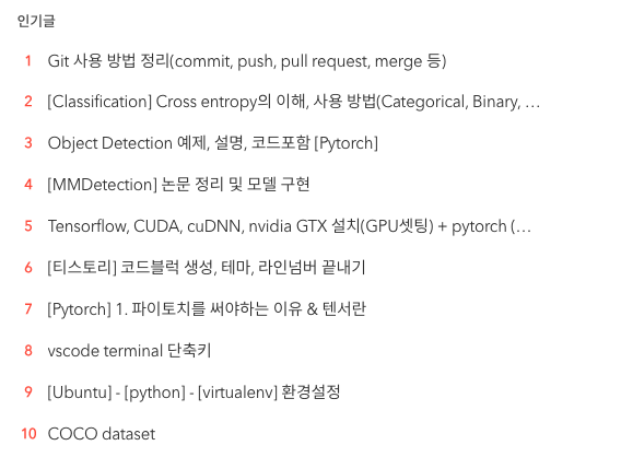 그리고 2등~10등 까지 대부분 딥러닝 관련 글이 많다.
