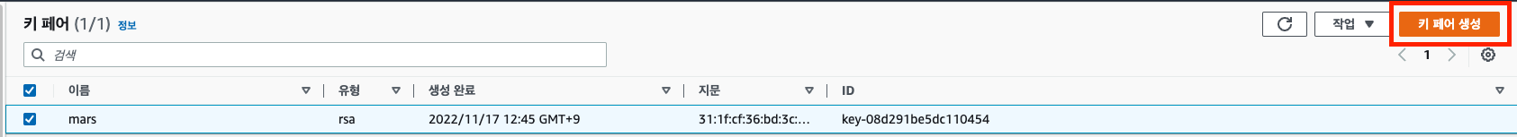 AWS > EC2 > 네트워크 및 보안 > 키 페어