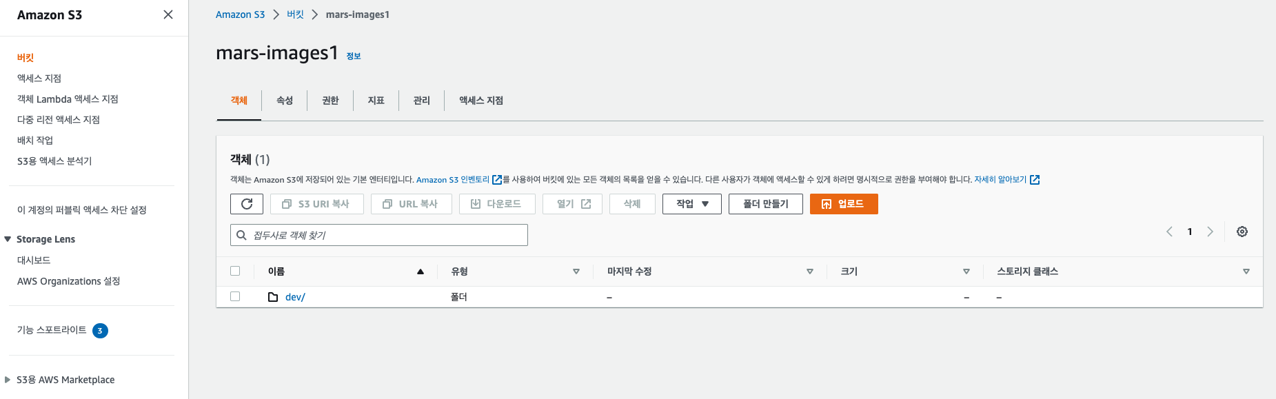 이제 S3 에 이미지 파일이 등록된 것을 확인할 수 있다.