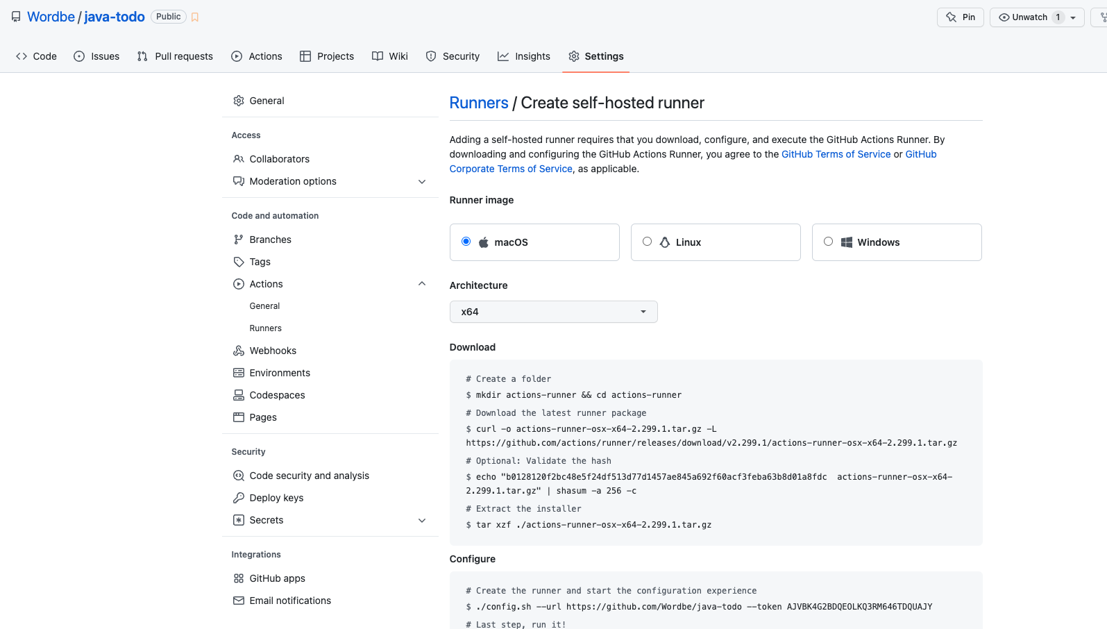 - 내 서버를 레포지토리에 등록하려면 레포지토리 settings > Actions > Runners 에 들어가서 설정하면 됩니다.