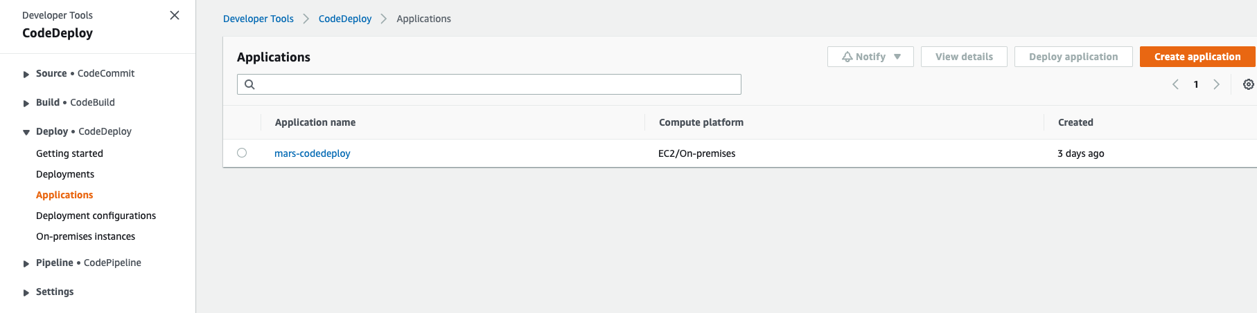 코드디플로이를 등록해준다. EC2 에 등록하여 사용한다면 무료로 사용할 수 있다.
