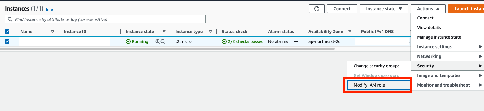 그리고 생성한 Role 을 EC2 에 등록해준다.