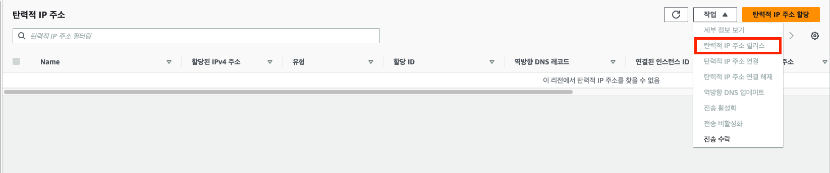 EC2 인스턴스와 연결을 해제했고, 탄력적 IP 릴리즈를 하여 제거해주었다.