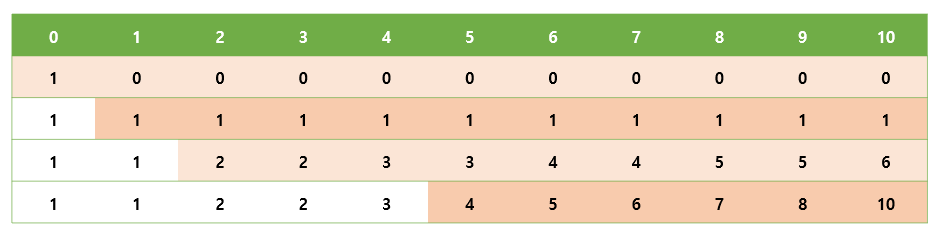 위의 경우 coin = {1, 2, 5}이고,