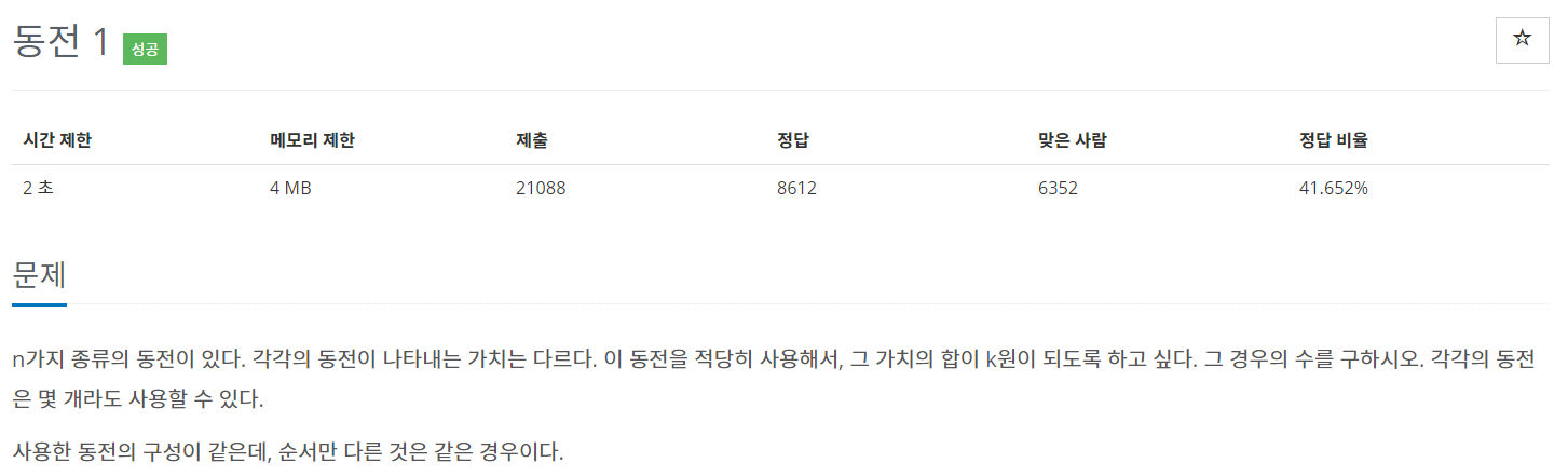 0원의 조합을 만들 수 있는 경우의 수는 동전을 아무것도 쓰지 않는 경우 1개 이기 때문이다.